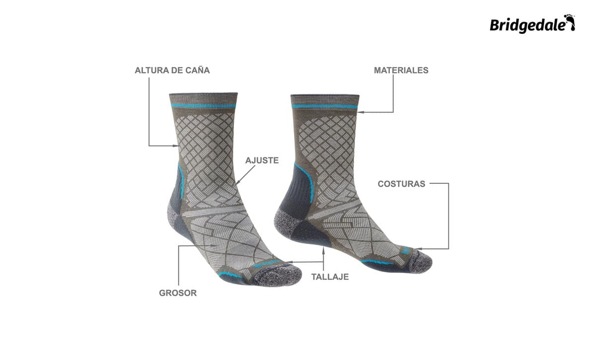 Bridgedale, marca número uno en la fabricación de calcetines técnicos para los amantes del outdoor, recomienda tener en cuenta algunos aspectos básicos, normalmente ignorados, a la hora de escoger un buen calcetín. Los puntos clave para no equivocarnos en nuestra elección son: la altura de la caña, los materiales usados, el ajuste, las costuras, el grosor y el tallaje.