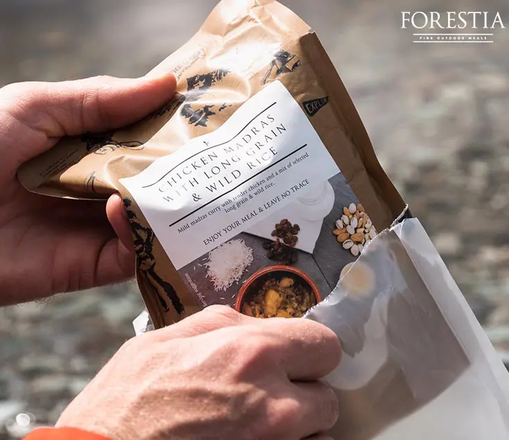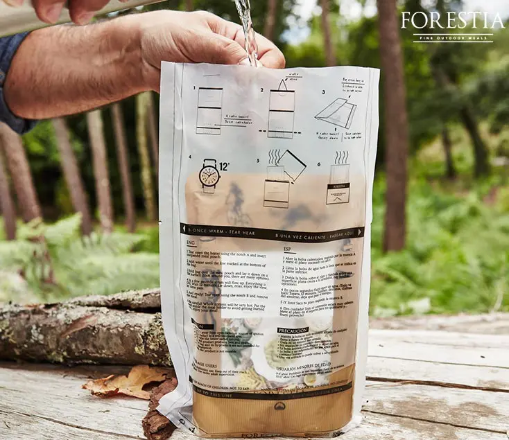 Forestia cuenta con raciones de comida listas para calentar y disfrutar. No necesita agua extra, simplemente caliéntalo en tu olla de camping ¡y a comer!